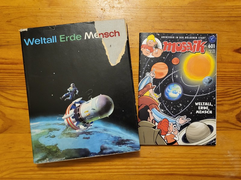 Das Heft 601 für den Januar diesen Jahres hält darüber hinaus eine kleine Anspielung bereit. Mit dem Titel „Weltall Erde Mensch“ wird bewußt auf den gleichnamigen ostdeutschen Klassiker der Populärwissenschaft verwiesen. Dieses Buch gab es in der DDR in einer Millionenauflage, da es zwischen 1954 und 1974 vor allem zur Jugendweihe verschenkt wurde.
